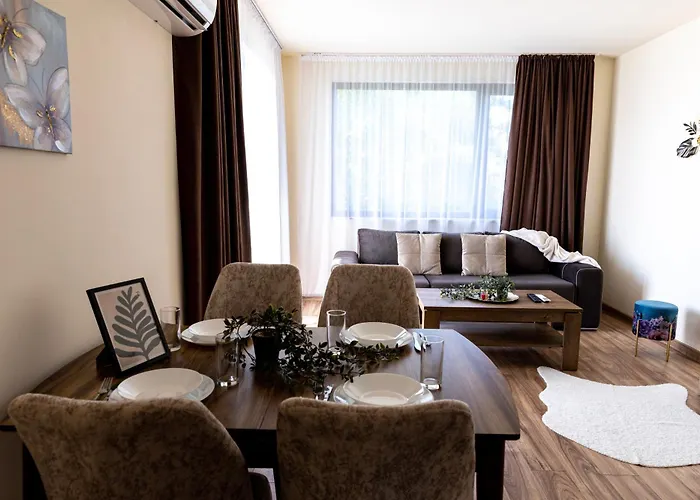 A 90 m²-es Two-Bedroom Apartment With Kitchen Szent Konstantin és Elena könnyű elérhetőséget nyújt az olyan városi nevezetességekhez, mint az egy 6 perces sétára található Szent Konstantin és Elena kolostora. Az apartmanhoz egy terasz tartozik, ahol tengerparti kilátás nyílik a tengerre.